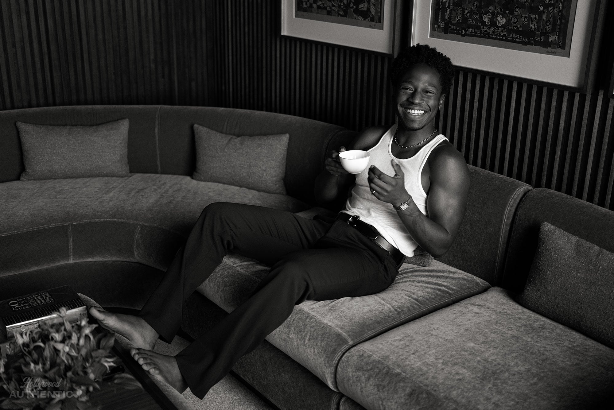David Jonsson gazes out over Mayfair from the floor-to-ceiling windows of a top-floor suite at the Chancery Rosewood hotel, sipping his third cup of coffee. ‘I’ve moved all about different parts of London now,’ the British actor and producer says, ‘but East London is home.’ Last year’s recipient of BAFTA’s coveted Rising Star Award (which is where we first met) has been working all over different parts of the world as his career has taken off, but the UK’s capital is still where he lives, and the place that keeps him grounded. ‘My family are Creole. We have African and Caribbean influences that all feel very represented in East London and it’s one of those places that’s very community-based. Everyone knows your business. I guess the more work I’ve done, the more I want people not knowing my business,’ he laughs.