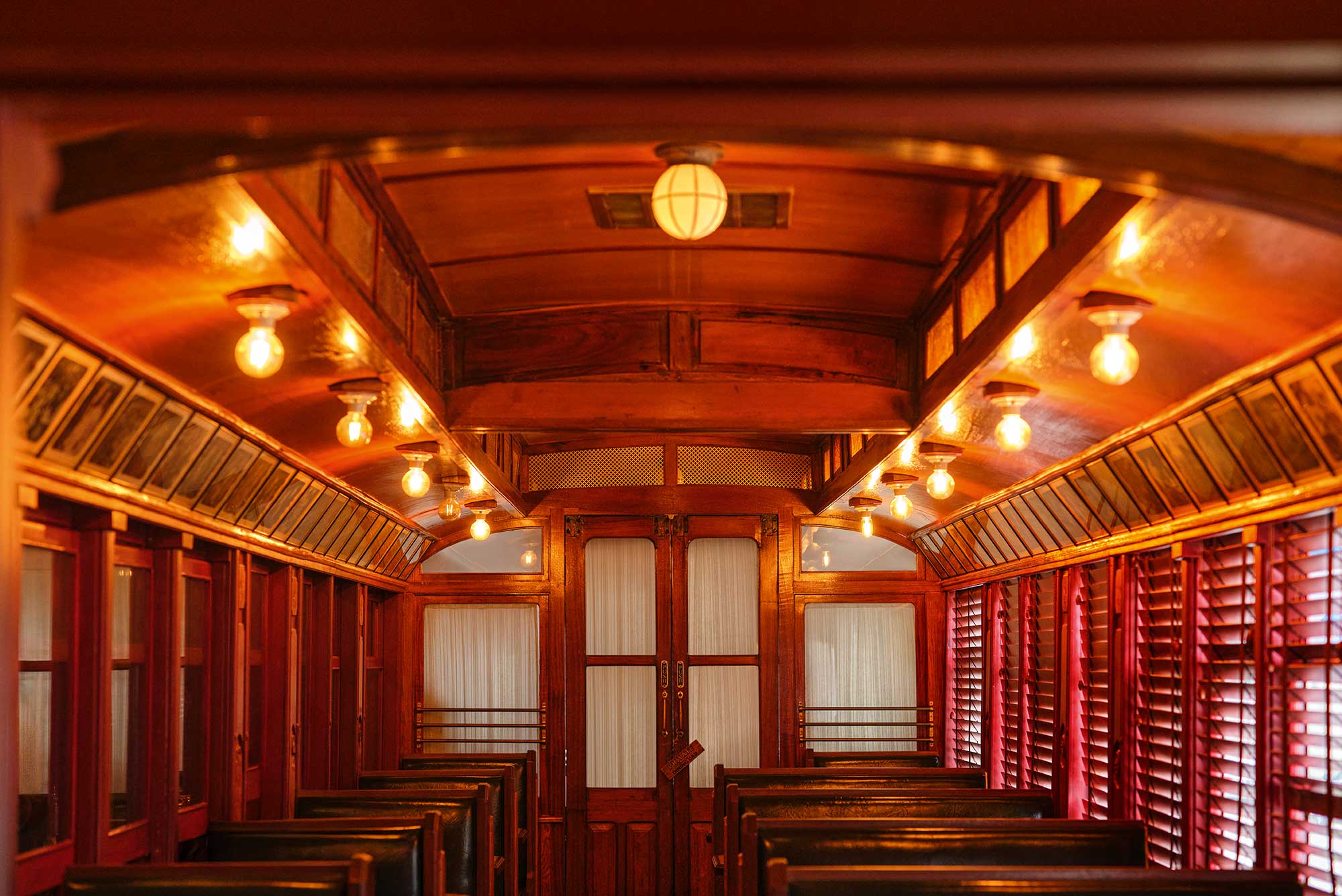 Consulting old photographs for veracity, the team painstakingly replaced all the fitting and ephemera as it was (dusting off in-storage items, re-purchasing sold property), and worked on a new bar area and the refurbishment of the 36-seater, 800-series Pacific Electric trolley car – which is now the oldest surviving model of its kind. The careful $2.4 million restoration replaced trolley parts and uncovered new glass – and allowed the small room at the back of the car, which was formerly Siegel and then later mobster Mickey Cohen’s private office, to shine. Now it’s a cosy VIP dining space for up to 20 people with its own separate entrance and a vintage rotary phone to make orders directly to the bar. It was also here during the recent Presley birthday celebrations that Elvis’ prized possessions were displayed for guests (his gem-encrusted ‘TCB’ ring, Aloha Hawaii cape and silver Vegas belt among the treasures) after being flown in with the curator via private jet direct from Graceland. The vibe of both kingpins and the king reside here.