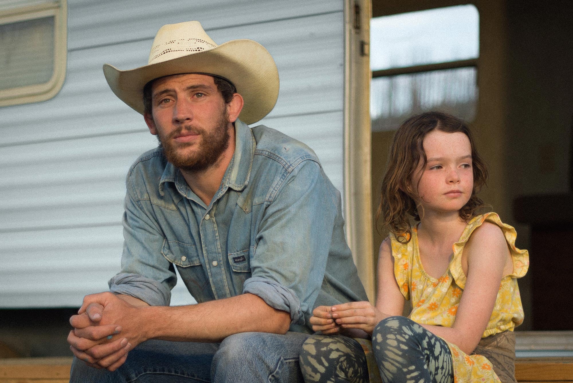 ‘Can you even be a cowboy without cows?’ asks Callie-Rose, the little daughter of Colorado cowpoke Dusty (Josh O’Conner) who has lost his generational ranch to a wildfire, leaving him houseless and untethered. It’s a question writer/director Max Walker-Silverman (who previously produced A Love Song) asks in this delicate ‘slow cinema’ look at the meaning of home and the balm of community – who are any of us without our possessions? Having been almost pathological self sufficient to the point of breaking up his marriage before the fire crept over the ridge to gobble his ancient barn, family house and wooded land; taciturn Dusty finds himself trying to repair both his life and his relationship with his cute-as-a-button kid.