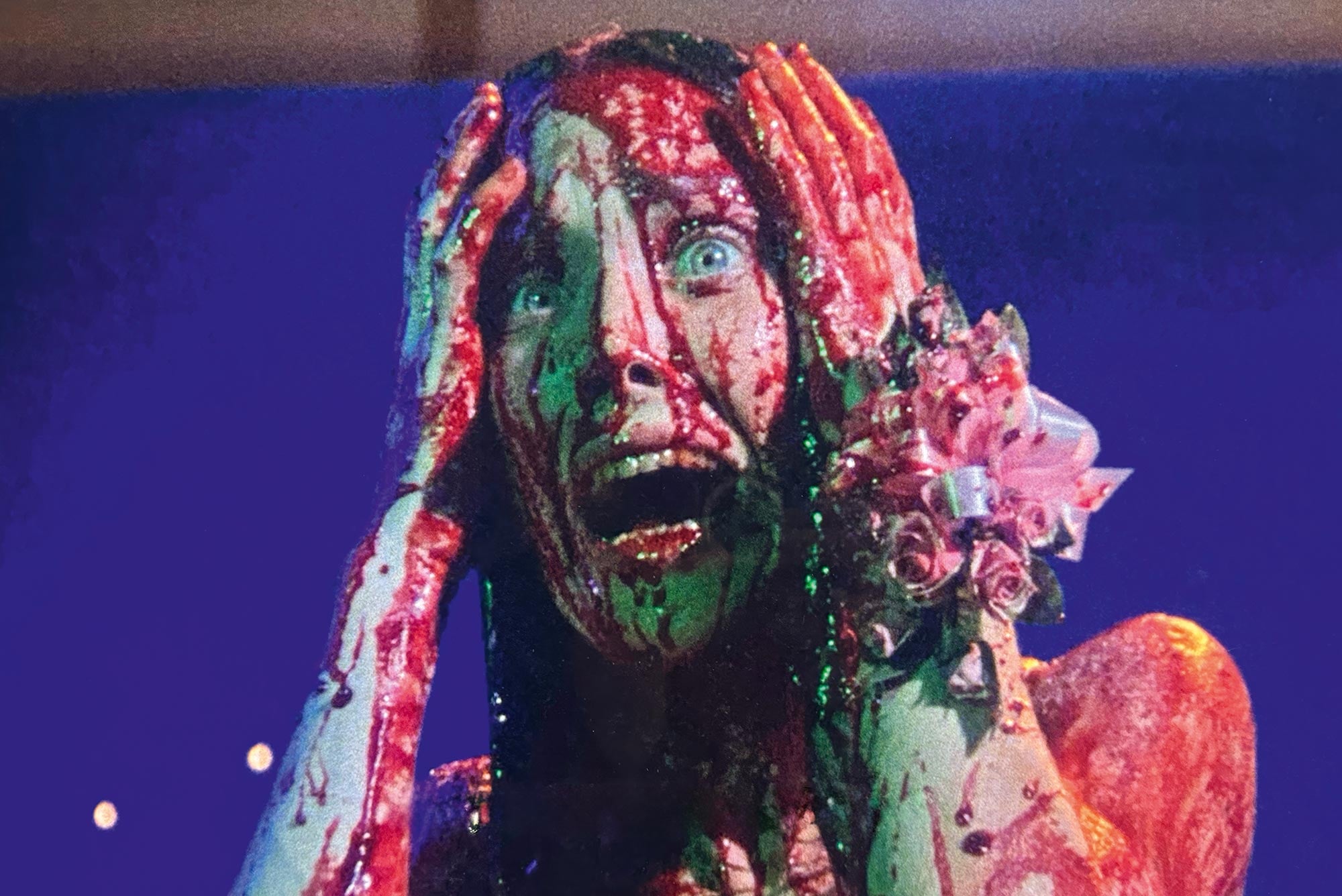 Carrie is paired with Tommy Ross, the archetypal golden-haired high-school prince, and manoeuvred into becoming prom queen. Suspended above the dance floor is a bucket of pig’s blood, waiting to fall. The blood is a deliberate echo of the shower scene, the narrative closing in on itself as humiliation becomes spectacle.